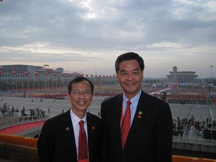 Home/近期活動/理事會主席梁振英先生及總裁張志剛先生於北京出席國慶活動近期活動理事會主席梁振英先生及總裁張志剛先生於北京出席國慶活動Published: 2009年10月1日•Type: ACTIVITY本中心理事會主席梁振英(右二)與立法會主席曾鈺成(左一)於北京國慶活動合照。本中心理事會主席梁振英先生出席北京國慶活動。本中心總裁張志剛先生出席北京國慶活動。
